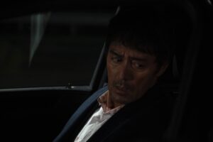 SNSの炎上がきっかけで逃亡犯となってしまった泰介は、人気のない釣り具店の駐車場に車を止めていた。状況の整理がつかず、癇癪を起こし、声を荒らげる泰介。なぜか助手席に置いてあったネギを持ち、思い切りハンドルに叩きつける。怒りに任せて殴るように何度も叩くと、次第にネギはボロボロになっていく。車体は激しく揺れ、「くそっ!」という声と共に徐々に息も上がっていく。