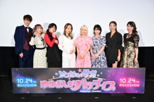 超人気TVアニメ『ゾンビランドサガ』シリーズ待望の劇場版『ゾンビランドサガ ゆめぎんがパラダイス』(10月24日公開)がついに完成。9月28日には新宿バルト9にて完成披露ギャラクシープレミアが実施され、巽幸太郎役の宮野真守、源さくら役の本渡楓、二階堂サキ役の田野アサミ、水野愛役の種田梨沙、紺野純子役の河瀬茉希、ゆうぎり役の衣川里佳、星川リリィ役の田中美海、山田たえ役の三石琴乃が登壇した。