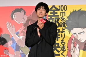 平日にもかかわらず満員御礼で迎えたこの日。生まれつき足が速い「才能型」の主人公・トガシを務めた松坂は「僕の周りでも陸上をやっていない人でも観に行ってくださって、熱量あるメッセージをくれました。実写を観ているような感覚にも陥ったと言っていたのも印象的でした」と反響を実感。