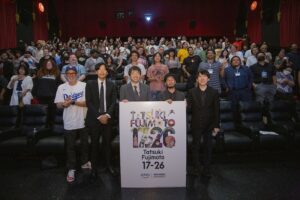 10月3日~10月5日(現地時間)にハリウッドの名門チャイニーズシアターで開催された<グローバルステージハリウッド映画祭2025>にて、『藤本タツキ 17-26』のワールドプレミアが開催された。『庭には二羽ニワトリがいた。』の長屋誠志郎監督、『恋は盲目』の武内宣之監督、そして本作の企画・プロデュースを務めるエイベックス・アニメーションレーベルズの大山良が本プレミアに参加。
