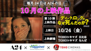 2023年10⽉、ニューヨークを拠点とする独⽴系スタジオA24とパートナーシップ契約を締結したハピネットファントム・スタジオ。今年1⽉より、TOHOシネマズの劇場にて毎⽉24⽇に<制作:A24×配給:ハピネットファントム・スタジオ作品>の特別上映がスタートした。このたび、第10弾として『ディック・ロングはなぜ死んだのか?』の上映が決定した。