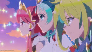 花の騎士シンシアと名乗る白い異形を退けたプリンセスたち。アリスピアの危機は去っておらず、さすがに気落ちしてしまいます。ですが、今日はこれから待ちに待ったなつのライブ。切り替えて、会場へ赴きます。そんな晴れの舞台に魔の手を伸ばすのは、やはり花の騎士シンシアでした。