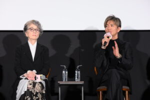 さらに、自身にとって山田作品への出演が本作で70本目となる倍賞は、「山田作品は私にとって学校でした。それもお芝居の学校ではなく、人間としてどう生きていくか学ぶ場としての学校でした。そして、山田さんは昔からバイタリティーがあって、変わらないです。今回もNGをたくさんいただきました。現場に入った瞬間から『こんな素敵なスタッフの皆さんと山登りができるんだな』という想いでした」と慣れ親しんだ山田組への想いを告白。『武士の一分』以来、19年ぶり2度目の山田組への参加となった木村も「以前、参加させていただいた作品は時代劇だったので、今回は現代劇で実際にいるかもしれない人たちを描いている現場でしたし、すごいテクノロジーも現場には取り入れていました。僕がすみれさんを乗せて運転しているシーンは実はほとんどがスタジオで撮影しているんですよ」と撮影裏を明かすと、会場からは驚きの声が上がった。