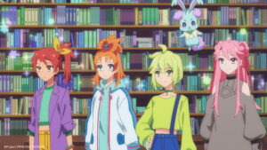 借りた本の返却というかがりの用事に付き合って、みなもたちはアリスピアにある中央図書館へとやって来ます。そこには偶然、先輩のすみれがいました。話を聞くと、彼女は定期的にここへ訪れ、アリスピアンに本の読み聞かせするのが習慣なのだそうです。