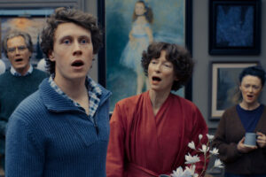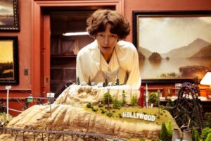 終末世界の豪奢で歪んだ地下生活を映し出した場面写真が公開された。母(ティルダ・スウィントン)と父(マイケル・シャノン)が仮装を楽しみながら贅沢な食卓を囲む光景には、終末の世界をも祝祭のように生き抜こうとする異様な高揚感が漂う。エンターテインメントと狂乱の象徴であるハリウッドサインのジオラマを前に現実逃避する母の姿、ルノワールをはじめとする名画の前で突如歌い出す家族の姿などが捉えられ、どのカットも現実と虚構、歓喜と絶望がないまぜになった不穏な美しさを放ち、滅亡寸前の地球にあっても、衣服、インテリア、食事——あらゆる贅を尽くした生活を死守しようとする富裕者たちの、歪んだ“終末の饗宴”が、見る者の心をざわつかせるものになっている。