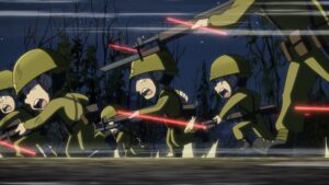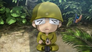 断崖絶壁の崖をお互いに支え合いながら登り、満点の星空の下でシャボン玉を吹く吉敷とそれを穏やかに見守る田丸の姿は、過酷な環境下を懸命に生き抜く若き青年たちの何物にも変えられない友情を感じさせる一方、夜間の銃撃の中を決死の表情で突き進む日本兵たちからは、甚大な被害を生み出した凄惨なる戦場の様子が垣間見えるものだ。加えて、島田少尉(CV:天野宏郷)から功績係に任命される田丸や、豪雨の中の戦闘で田丸を救うべく鬼気迫る表情でアメリカ兵に襲いかかる吉敷など、それぞれの生き様や個性を感じさせるカットも。厳しい戦局においても日本国の勝利を信じ、そして生き残って帰るため、わずかなる希望と覚悟を胸に抗い続ける兵士たち。そんな物語で紡ぎ出される仲間たちの人情劇と、止まることなく襲い続ける被害の数々。その全てを飾ることなく、リアリティ満載に描き出した戦場ドラマには、ますます期待が高まるばかりだ。