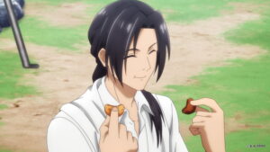 アリスティードたちが生け捕りにした魔魚・ザナスの下処理をするため川へと向かうメルフィエラ。騎士たちの力も借りながら、アリスティードの力強い剣さばきと、メルフィエラの描く魔法陣の力で見事魔力を吸い出すことに成功する。下処理を終えた一行はザナスを砦へ持ち帰り、美味しくいただくための調理へと取り掛かることに。