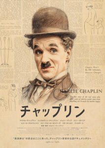 アザービジュアルは、放浪紳士に扮するチャップリンを、イラストタッチでレトロに表現したもの。眉をクイッと上げたその表情からは、放浪紳士の心優しいキャラクターが読み取れる。背景は実際にチャップリンを報じた当時の新聞の数々。極貧の少年時代から一躍スターダムを駆け上り、アメリカを追放されスイスで過ごした晩年まで、喜劇王チャップリンの知られざる人生を期待させる。