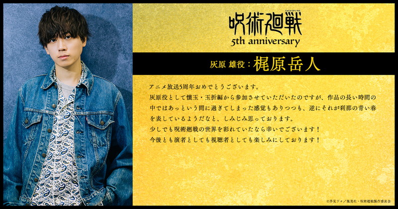 「懐玉・玉折」出演キャストよりアニメ『呪術廻戦』5周年お祝いコメントが到着「とびきりイカしたクズ野郎だった」