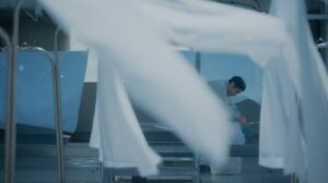 不安にも必死そうにも見える表情で窓ガラスをホースで清掃する男(香川照之)。そしてその男とエレベーターで一緒になるが、気にも留めない様子の刑事の堂本(中村アン)、また死体が発見された現場で調査中の堂本と、その同僚の飯田(竹原ピストル)と菊池(宮近海斗)たち。さらには、ファミレスにいる倉本(松田龍平)や、雨のなか佇む祐里(中島セナ)、煙草を吸う岸(シソンヌじろう)ら、災いに巻き込まれる人々の姿も。