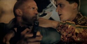 手を縛られ床に転がるステイサムを見下ろすのは奇抜なファッションをした二人のロシアンマフィア。絶体絶命の状況にも関わらず、落ち着いた様子で二人を煽り続けるステイサム。“元特殊部隊員”ステイサムの「それぐらいじゃビビらない」という静かな宣告によって逆襲が開始。見事な回し蹴りであっという間に二人の男を跳ね除けると、車内の異常に気づいた運転手が車のスピードを上げ始め、同時にアクションシーンの緊張感が高まっていく。
