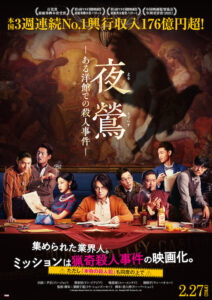 ポスタービジュアルは、登場人物が真剣な表情を浮かべ、密室でのミッションに臨む中で張り詰めた空気感を感じさせるビジュアルに仕上がっている。更に、背景に浮かぶ夜鶯のシルエットが、物語の謎と不穏さを一層引き立てている。