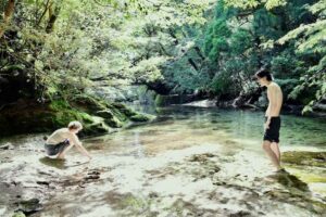 河瀨監督の作品にとって「自然」は欠かせない。ずっと撮り続けてきた「森」の中でも太古の昔からの記憶を持つ屋久島の森は憧れであり、「王様みたいな存在」と河瀨は語る。コリーと迅の出会いの地であり、本作における“マザーロケーション”とも言える「屋久島」のシーンを捉えた新場面写真が公開された。