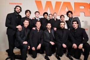 今回、本作のLAプレミア時にキャストらが勢揃いしたカットをお披露目。劇中の戦場とは打って変わり、シックなブラックスーツで決め込んだ彼ら。コズモ・ジャーヴィス(「SHOGUN 将軍」)、ウィル・ポールター、ジョセフ・クイン(「ストレンジャー・シングス」)らを筆頭に次世代スターたちの華やかな姿を捉えたものとなっている。