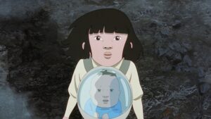 “空から降ってきたのは、虹色の少年…”のキャッチコピーも物語への期待を膨らませてくれ、さらに雲の上に突き出している木の枝のような形状の建物が、本作で描かれる見たことのない独創的な近未来の世界に、想像を沸き立たせてくれる。場面カットも、哀愁漂うノスタルジックな風景や日常の中に、ロボットやホログラムなどの近未来を感じさせる要素が溶け込み、独特の世界観に想像力が刺激される。
