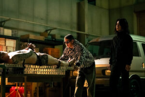 そしてこのたび、そんな2人の“拷問”の瞬間を切り取った場面写真が解禁となった。表情一つ変えずにガスバーナーを悪党の顔面に押しつけるカモ。さらに、威圧的に追い詰めるトラの姿。もし自分が拷問の対象者だったらと思うと…背筋が凍るショットとなっている。