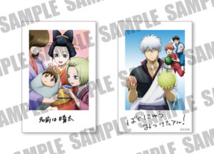 入場者特典第8弾は、「描き下ろしメモリアルイラストカード」に決定。映画では描かれなかったもしもの世界を舞台に、エモ&コミカルなシーンをインスタント写真風にしてお届け。1枚は生まれたばかりの晴太を大事に抱く母親の姿と日輪と月詠の姿が映し出され「名前は晴太」と手書きのメッセージ付き。もう1枚はピーチ三太夫になるべく仕込みをする銀時、新八、神楽の様子を収めた1枚。2種類ランダム配布のためどちらが当たるかはお楽しみ。映画鑑賞の思い出に必ずゲットだ。