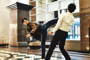 さらに、華麗なハイキックを披露するチェ・シウの姿も。そんな彼は、『犯罪都市』シリーズにてマ・ドンソクが演じる、拳一つで凶悪犯をなぎ倒す熱血刑事マ・ソクトの後輩。エリート刑事としての実力を証明するチェ・シウの力強いアクションは、どこかマ・ソクトを彷彿とさせる破壊力が宿っている。