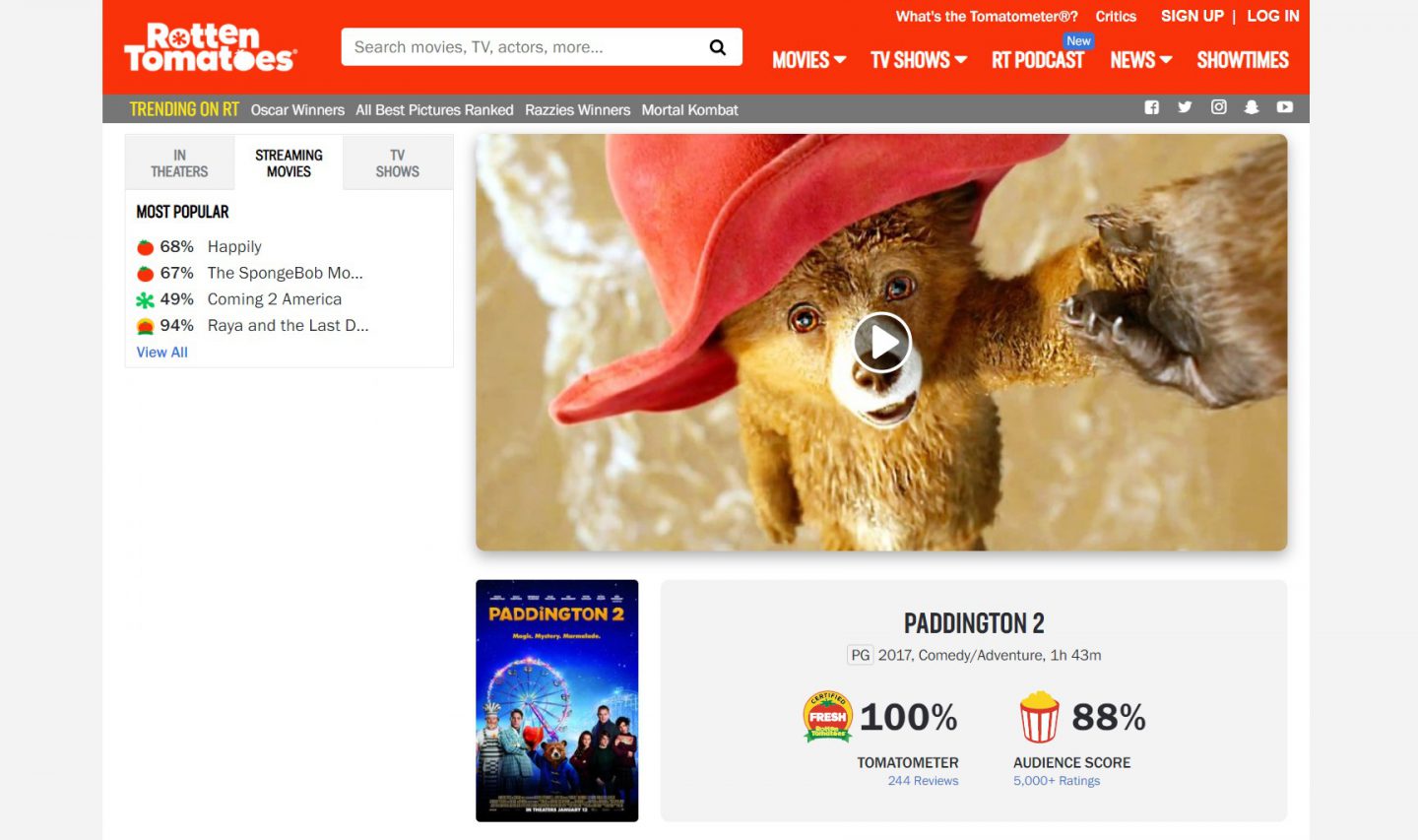 ポール・キング監督作品『パディントン2』(2018年)が、米辛口映画評論サイト「ロッテン・トマト」で『市民ケーン』(1941年)を抜き、史上最も高く評価された映画に躍り出たことで話題となっている!