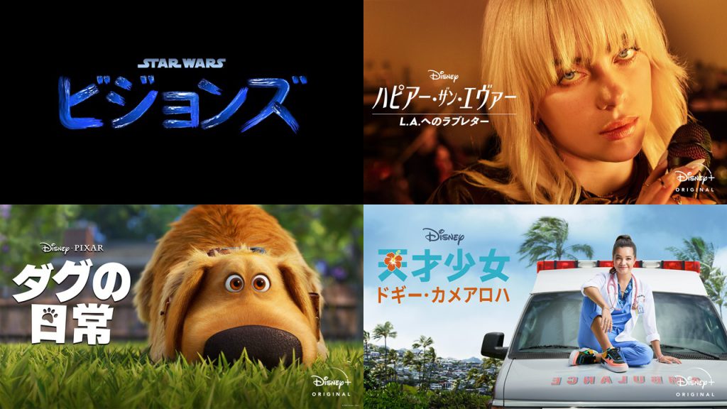 『スター・ウォーズ:ビジョンズ』© 2021 Lucasfilm Ltd. All Rights Reserved./『ハピアー・ザン・エヴァー:L.A.へのラブレター』© 2021 Disney/『ダグの日常』© 2021 Disney/Pixar/『天才少女ドギー・カメアロハ』© 2021 Disney
