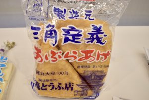 仙台のスーパーを撮影でお借りしたとき、定義の三角油げ(じょうぎのさんかくあぶらあげ)が大量に陳列されていました。地元の人には普通のことかもしれませんが、実際に食べてみると美味しいんです! 「宮城ふるさとプラザ」でも週に3回しか入荷しないらしいので、お気をつけください(笑)。