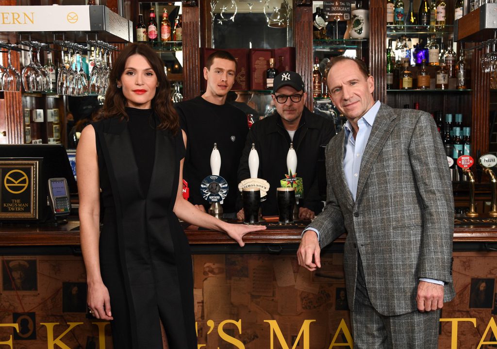 LONDON, ENGLAND - DECEMBER 06: (L-R) Gemma Arterton, Harris Dickinson, Matthew Vaughn and Ralph Fiennes attend the photocall for "The King's Man" on December 06, 2021 in London, England. (Photo by Gareth Cattermole/Getty Images for Disney)