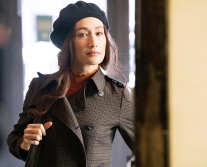まずは、ロンドンの古書店に出勤する場面に注目!落ち着いたシックな色のロングコートに黒いベレー帽を合わせた、メンズライクな「ブリティッシュ・トラディショナルスタイル」を披露。洗練された大人の女性の着こなしで、お洒落で落ち着いたロンドンの街並みにも馴染むスタイリングとなっている。続いて、アンナとレンブラント(マイケル・キートン)がレストランで再開するシーンを捉えた場面写真。シンプルでありながら、ボディラインが強調される真っ赤なタイトドレスを身にまとい、大人な雰囲気が漂うお洒落なレストランにピッタリなドレススタイルを披露。また、髪型もロンドンのシーンから一変、「黒髪ショート」となり、また違ったアンナの様子をうかがうことが出来る。