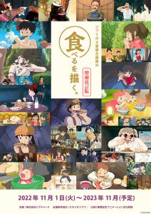 三鷹の森ジブリ美術館で開催され好評を博した企画展示「食べるを描く。」 の増補改訂版が展示される。ジブリ作品の食べ物はなぜおいしそうに見えるのか? その秘密をひも解く内容となっている。新たに『千と千尋の神隠し』『コクリコ坂から』 (2011年)『アーヤと魔女』(2020年)3作品の資料が追加され、コクリコ荘の台所も再現される。