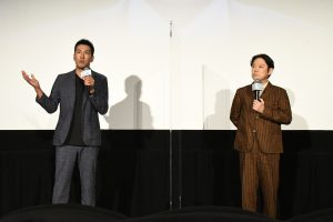 そして、さらにサプライズゲストとして、牧本は身寄りのない方を埋葬するおみおくり係という役柄にちなみ、実際に遺品整理のお仕事をされているさとうようへいが大阪から駆け付けた。(以下、さとう)大雨の中駆け付けてくれたさとうに、「そんな危険を犯してまで……」と心配をみせる阿部。「雨風に打たれましたが、今日この場に立てて皆さんにお会いできたことは良い思い出です。」と喜んだ。