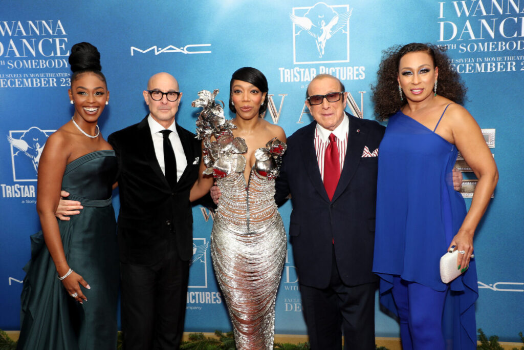NY, NY - 12/13/22 - (L-R) Nafessa Williams, Stanley Tucci, Naomi Ackie, Clive Davis and Tamara Tunie attends the World Premiere of Tristar Pictures WHITNEY HOUSTON: I WANNA DANCE WITH SOMEBODY, Presented by MAC STUDIOS at the AMC Lincoln Square in New York City