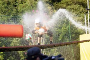 ②泥まみれ、ずぶ濡れになりながらも体当たりで挑む攻撃軍の奮闘に爆笑!