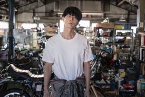 場面写真では、大切にしているバイク屋で佇む真一郎の姿が収められており、そのまっすぐな眼差しからも、マイキーが尊敬する強さとやさしさがそのまま伝わってくる一枚となっている。そして吉沢亮演じるマイキーと実の兄弟という設定において、その表情ひとつとってもまさに撮影現場での高良が真一郎そのものであったことが感じられる。