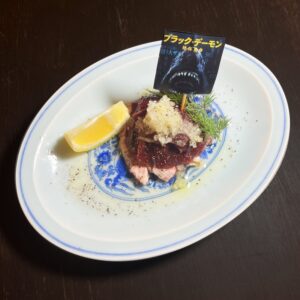 気になるメニューは、凶暴なサメを丸ごと食べることができる「BLACKDEMONの丸揚げ」や、「アブラツノザメの油田アヒージョ」など、映画の世界観を堪能できそうな逸品が揃っている。